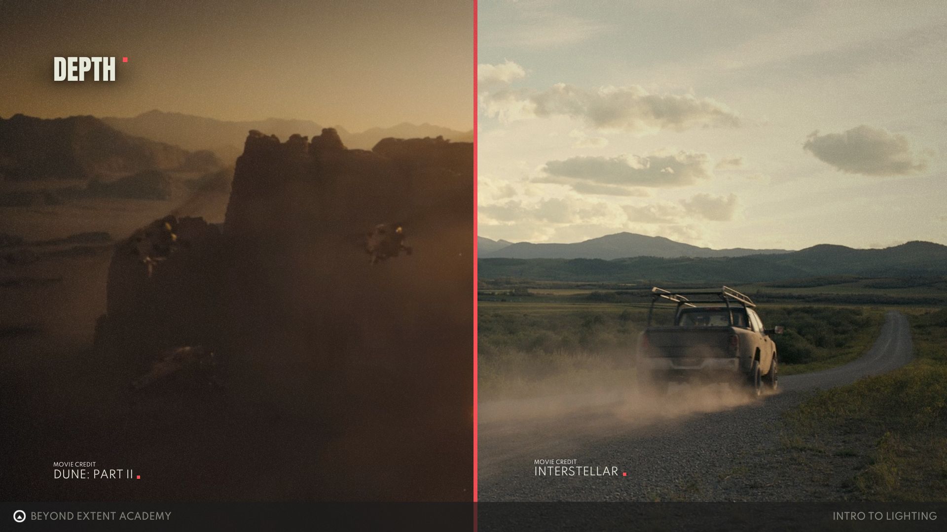 A simple example of this can be seen in landscape photography or cinematic scenes. The farther elements are from the viewer, the more the atmosphere affects them, causing them to gradually lose saturation and contrast with distance. This is called atmospheric perspective!