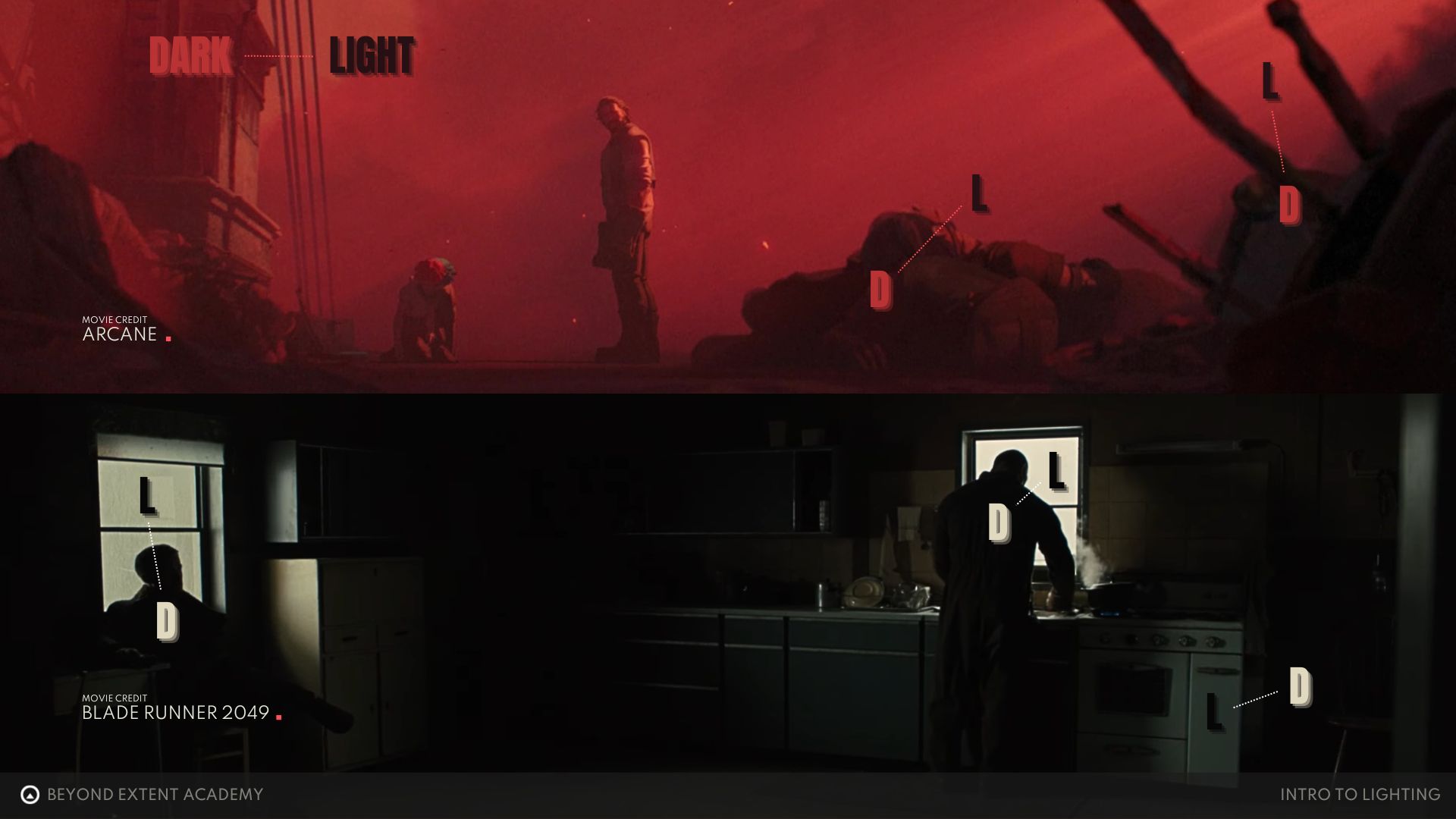 This concept is a cornerstone of cinematic lighting and lighting in general. All of these elements can be clearly observed in many movie scenes: