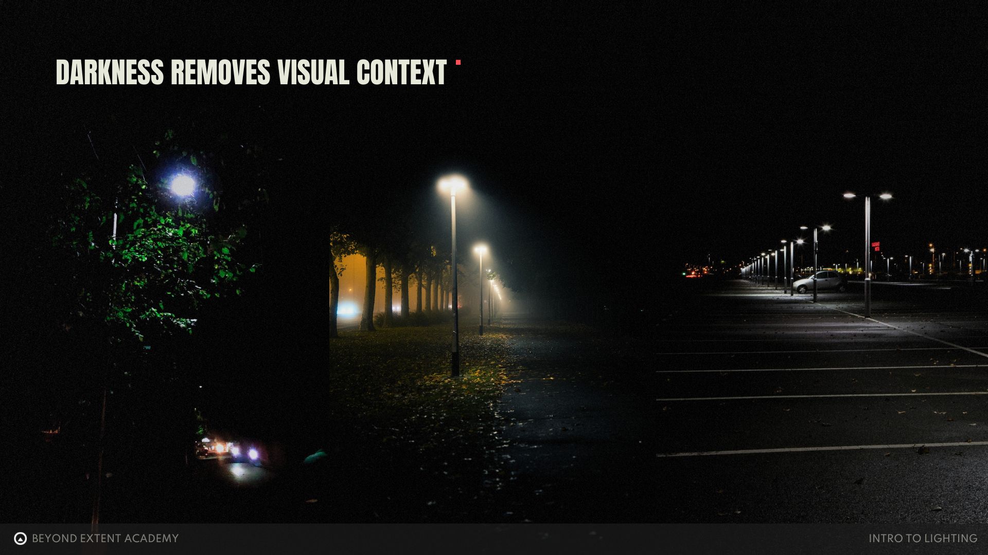 As artists, itâs important to understand the power that lighting has to change the perception of our creations, and how we can wield it to our advantage. In this lesson, weâll explore what lighting truly means, what it involves, and the key elements that define it. By the end, youâll have the foundation to create believable, emotionally resonant lighting in any environment or cinematic, no matter the software or engine you use.