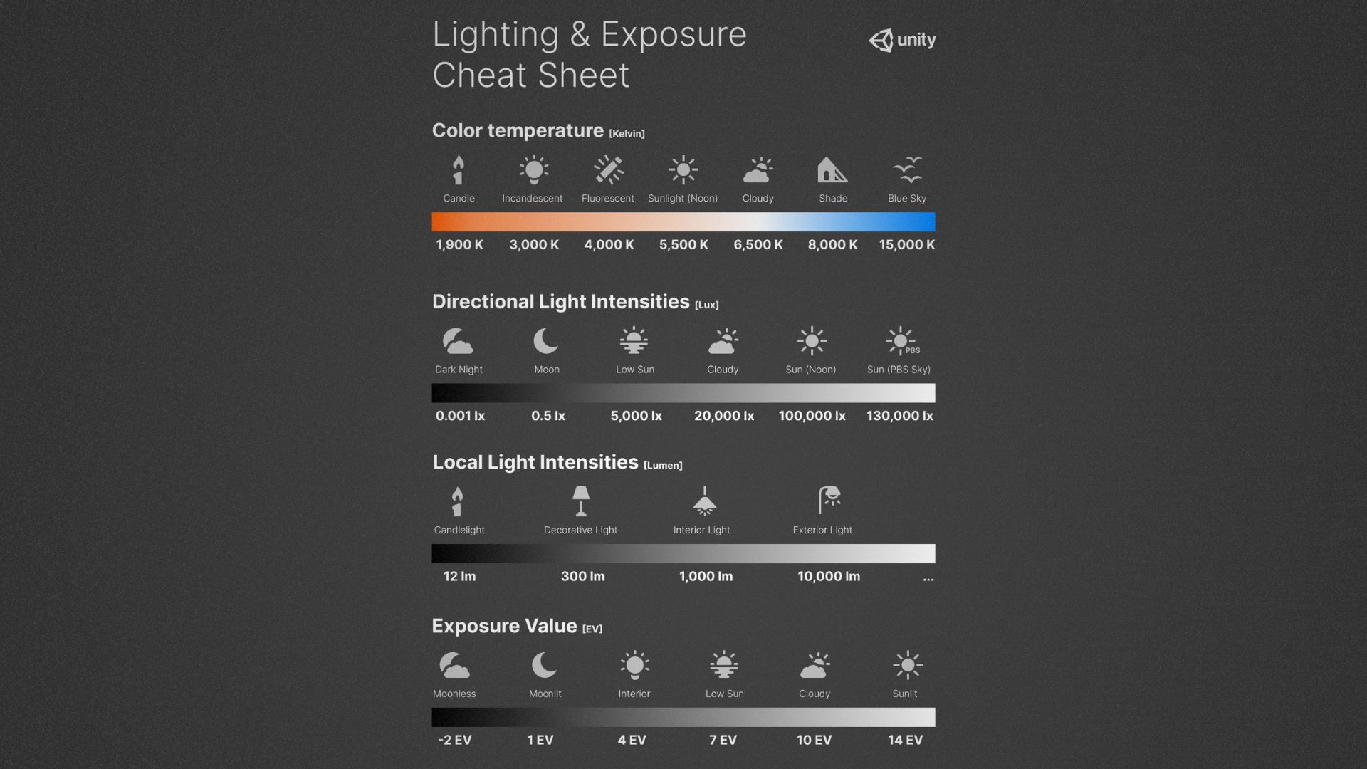 The following image serves as a cheat sheet, showing different color temperatures and light intensities based on real-world measurements.