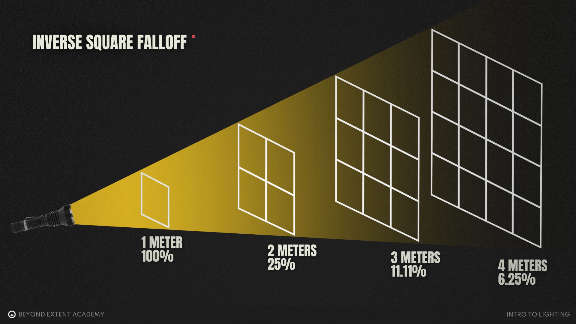 Before discussing what types of lights we have, itâs important to understand how lights work. This is where the Inverse Square Falloff comes in.