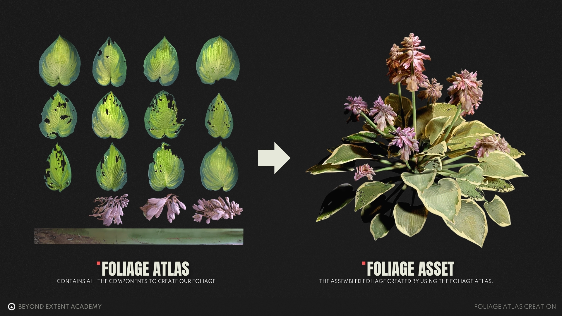 As we created all the individual components of our foliage atlas, it's time to assembled them all so we can bake them into our final foliage atlas.