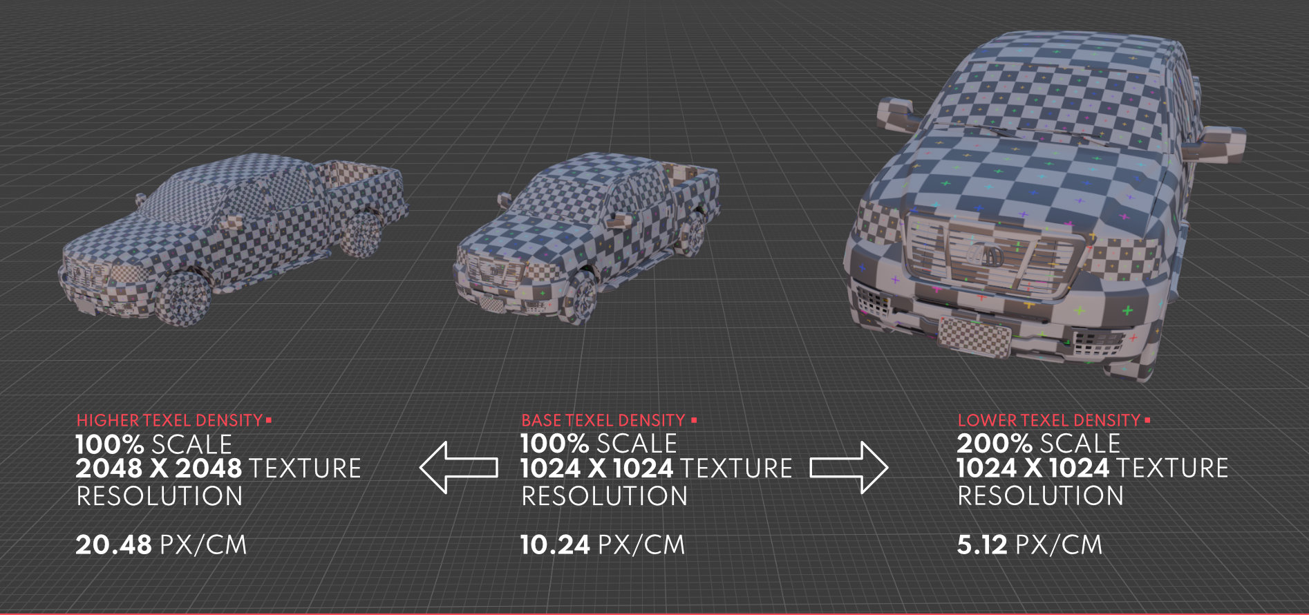 While the resolution of these textures itself can change between games and game types, texel density is about a consistent measurement value that’s game-wide.