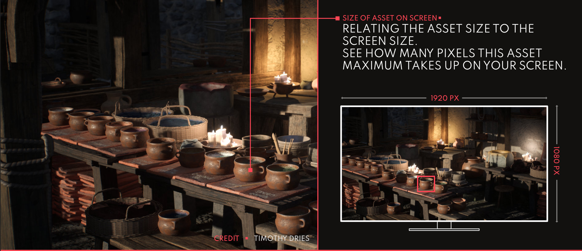 It’s also important to developers and specifically artists because it gives them a goal to work with when it comes to texture resolution and it also stops them from going crazy with trying to make everything look detailed and forgetting about the bigger picture. This is important when trying to create full environments or even entire worlds.