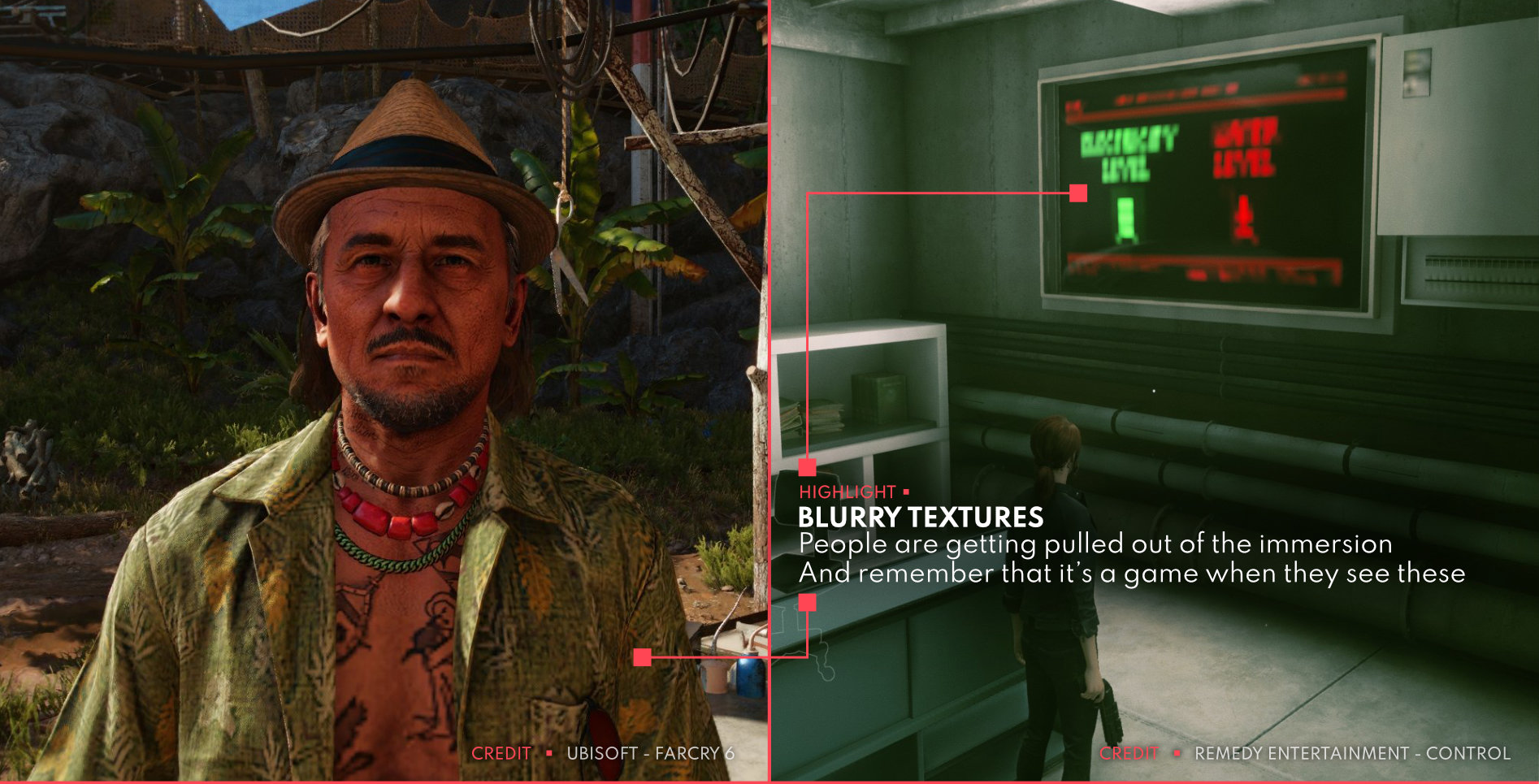 In games, you quickly notice when there is a disconnect between items in the world when one item’s textures look blurry and the other looks crisp. This is often caused by a mismatch in texel density and can pull the player out of that immersive feeling we’re trying to create.